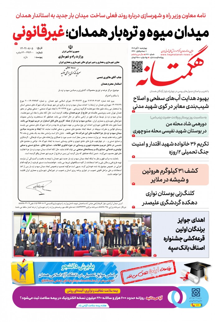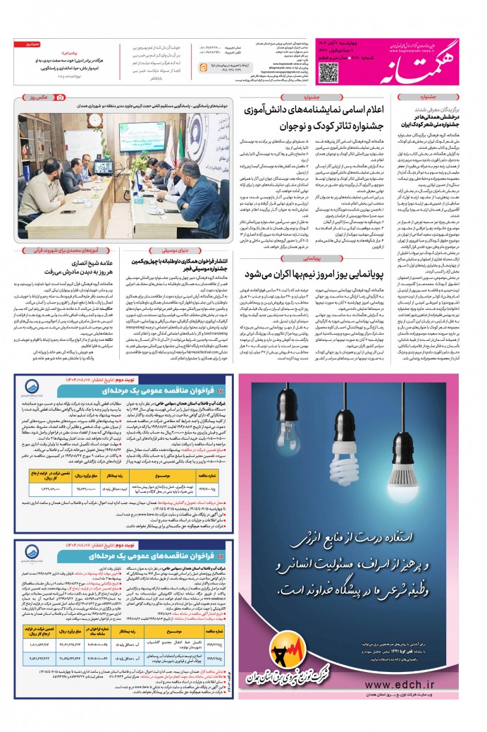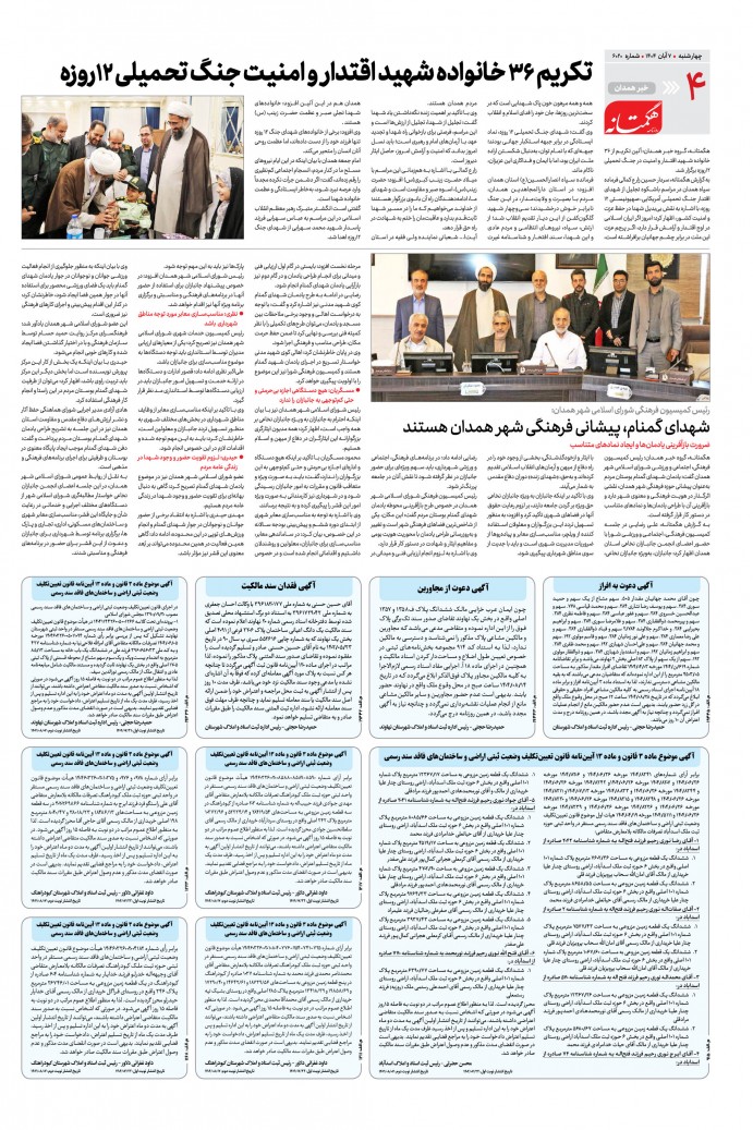 صفحه 1 : شهرستان صفحه 2 : خبر همدان صفحه 3 : شهرستان صفحه 4 : خبر همدان صفحه 5 : ایران و جهان صفحه 6 : ورزش صفحه 7 : اندیشه صفحه 8 : فرهنگی
