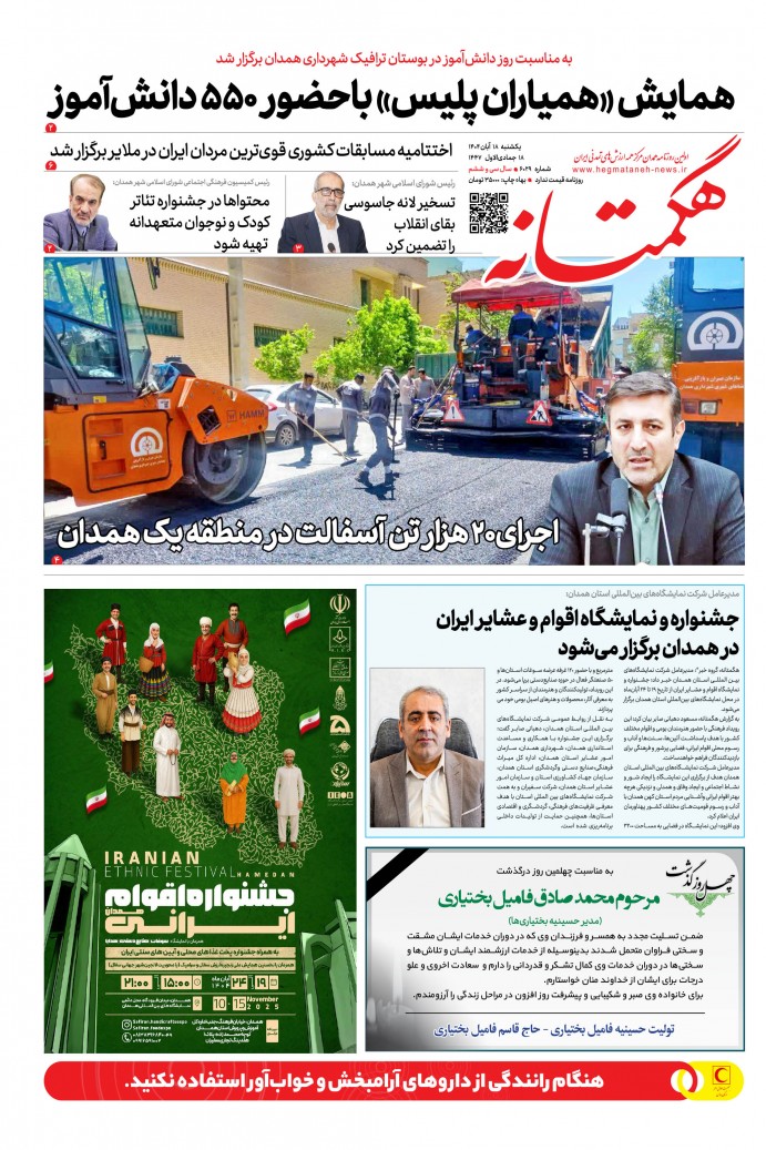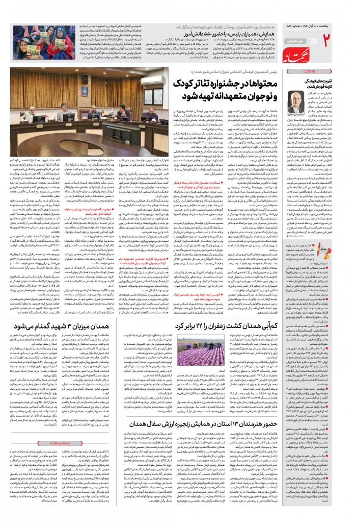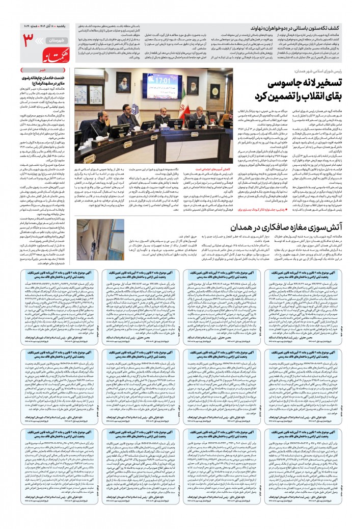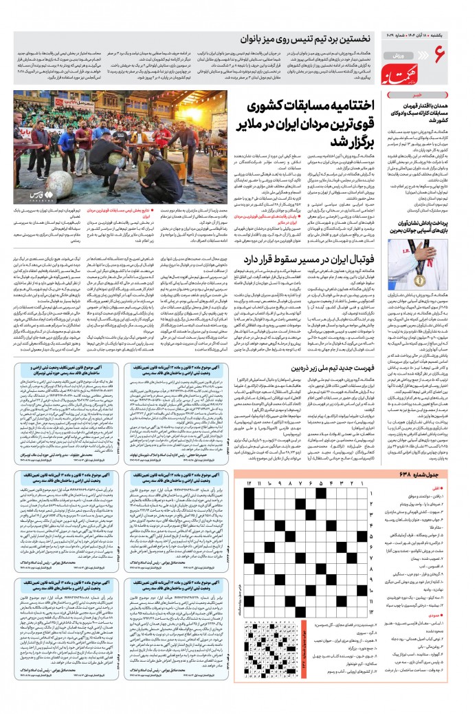 صفحه 1 : ورزش صفحه 2 : خبر همدان صفحه 3 : شهرستان صفحه 4 : خبر همدان صفحه 5 : ایران و جهان صفحه 6 : ورزش صفحه 7 : اندیشه صفحه 8 : فرهنگی