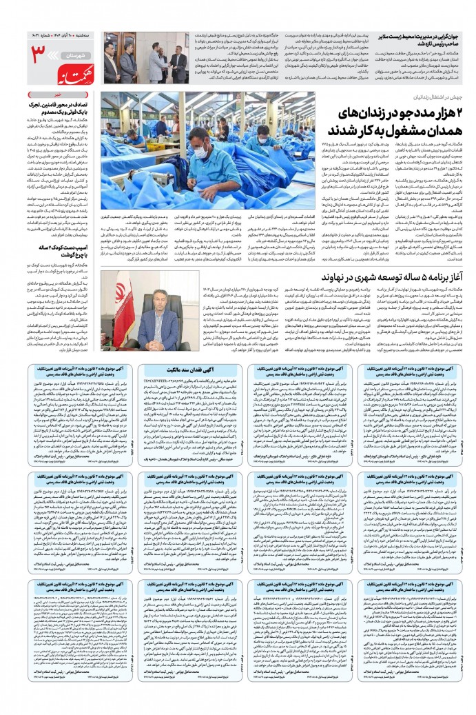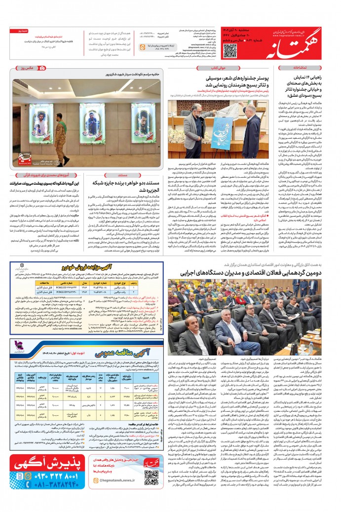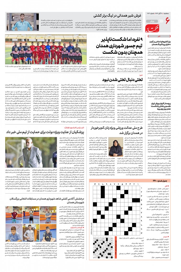 صفحه 1 : فرهنگی صفحه 2 : خبر همدان صفحه 3 : شهرستان صفحه 4 : زندگی با کتاب صفحه 5 : ایران و جهان صفحه 6 : ورزش صفحه 7 : همه دانا صفحه 8 : فرهنگی