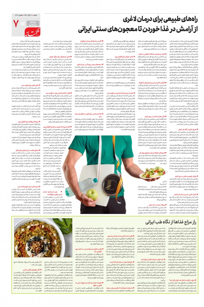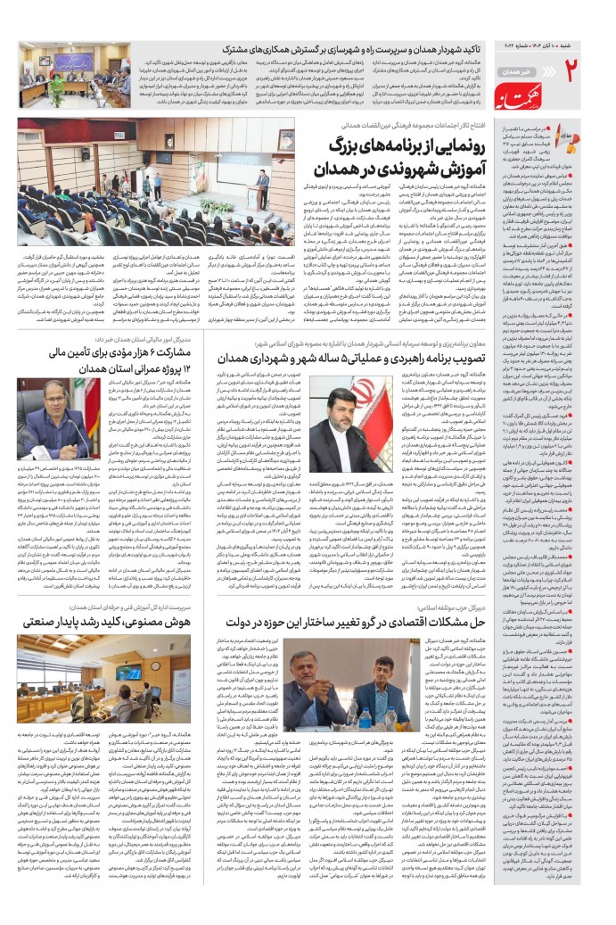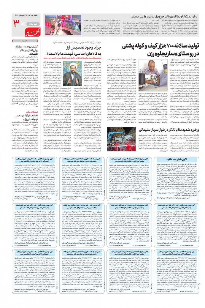 صفحه 1 : ورزش صفحه 2 : خبر همدان صفحه 3 : شهرستان صفحه 4 : گردشگری صفحه 5 : ایران و جهان صفحه 6 : ورزش صفحه 7 : پزشکی و سلامت صفحه 8 : فرهنگی
