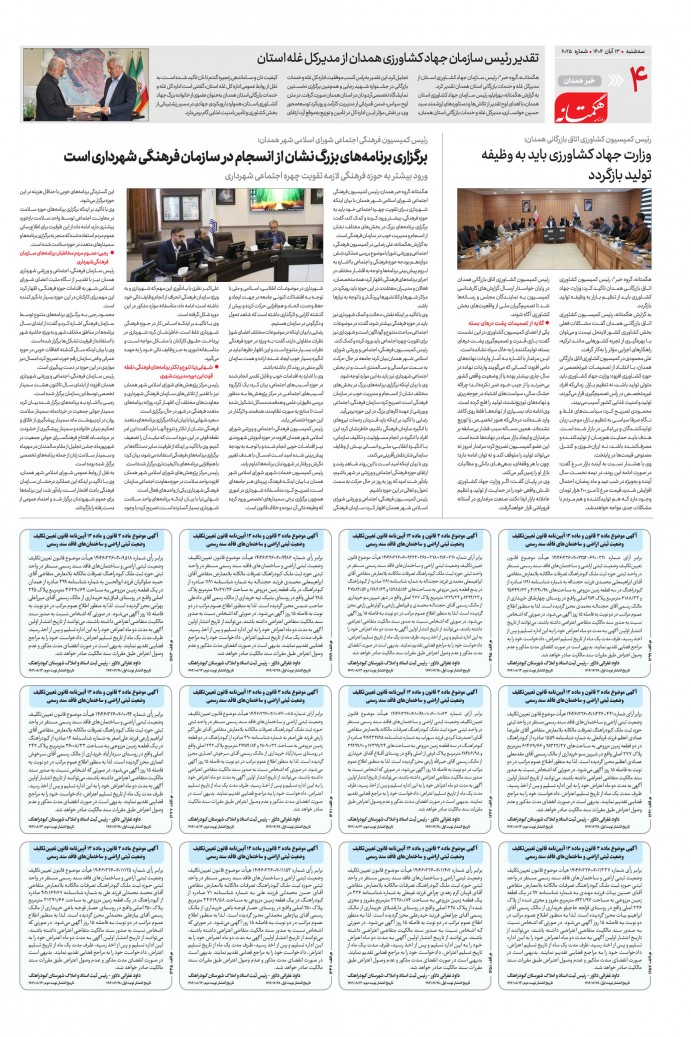 به نقل از کانال اطلاعرسانی استانداری همدان، استاندار همدان در پایان با قدردانی از نقش نیروهای مسلح و سپاه انصارالحسین(ع) در تأمین امنیت گفت: امنیت پایدار، زمینه اجرای همه طرحهای عمرانی استان است و قرار است دو جلسه جداگانه برای تعیین وضعیت واحدهای مسکونی فراجا و سپاه انصارالحسین(ع) برگزار شود تا عقبماندگیها جبران و کارها با شتاب بیشتری ادامه پیدا کند.
