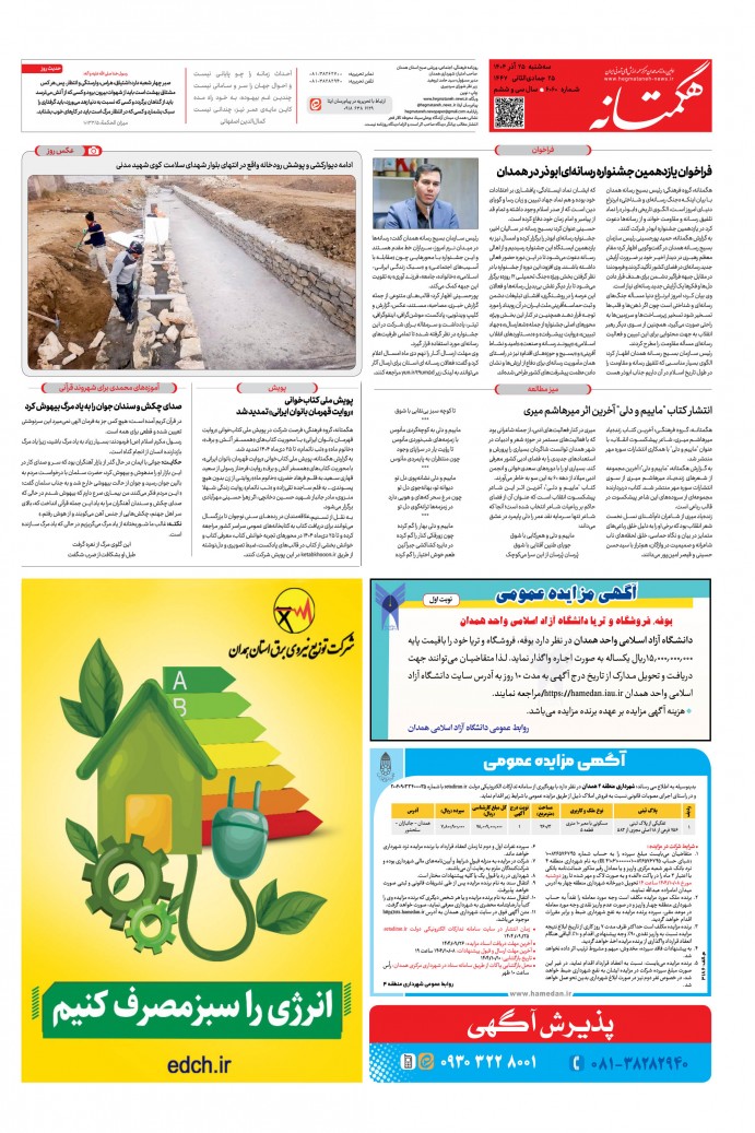 صفحه 1 : خبر همدان صفحه 2 : خبر همدان صفحه 3 : خبر همدان صفحه 4 : ورزش صفحه 5 : خبر همدان صفحه 6 : خبر همدان صفحه 7 : ایران و جهان صفحه 8 : فرهنگی